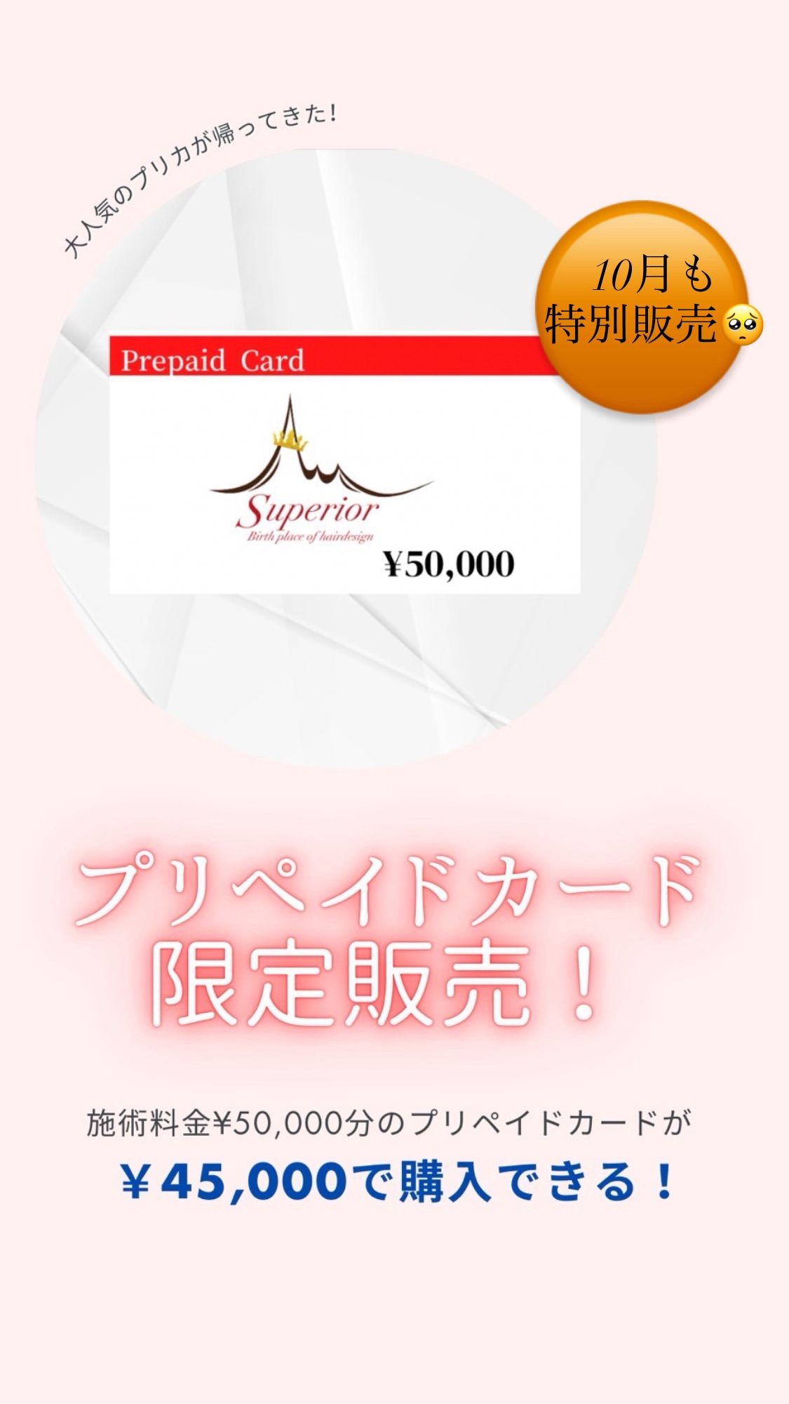 プリペイドカードが10月も特別販売が決定致しました( ^ω^ )