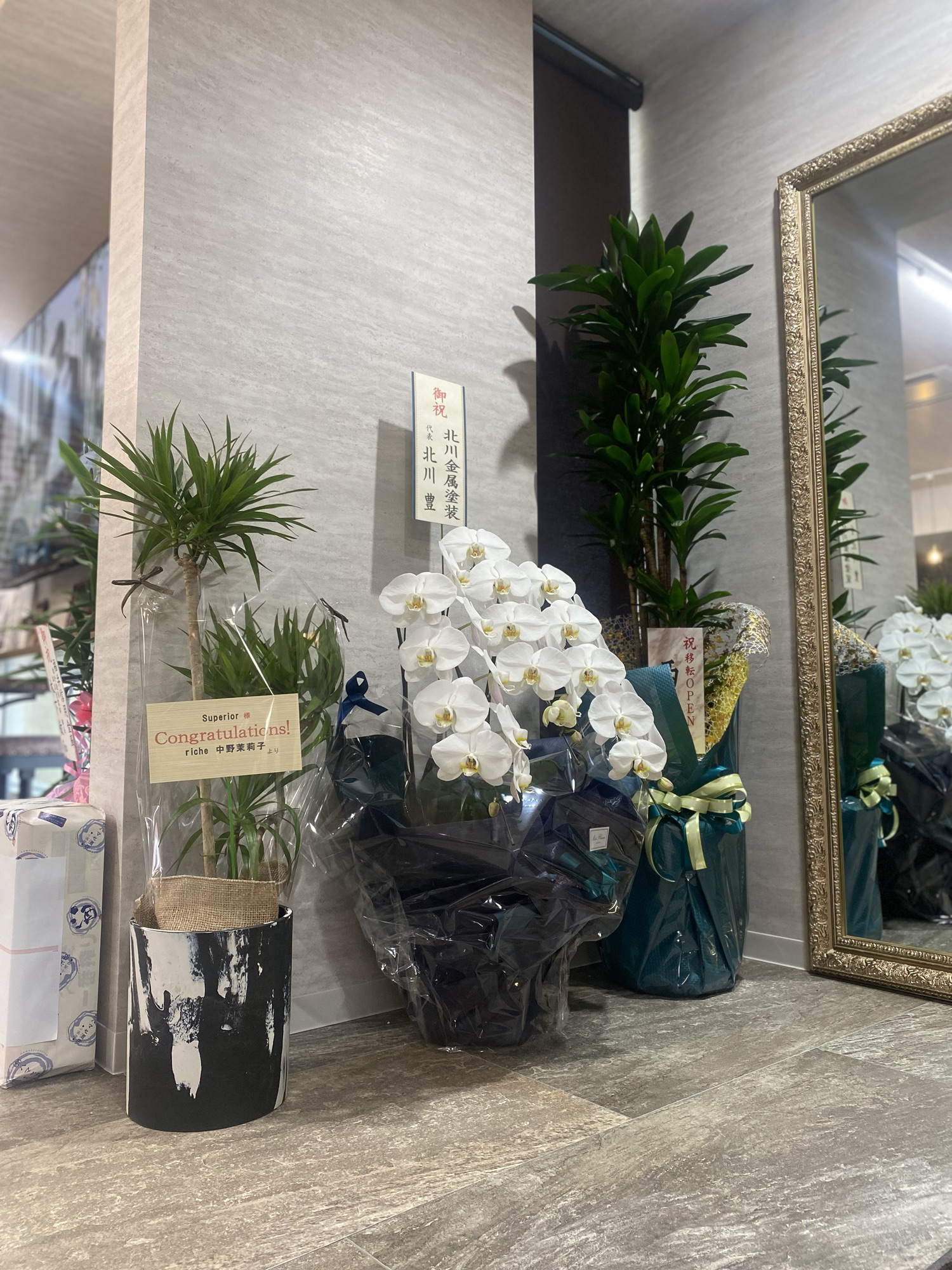お客様や企業様からのお祝いのお花や観葉植物が